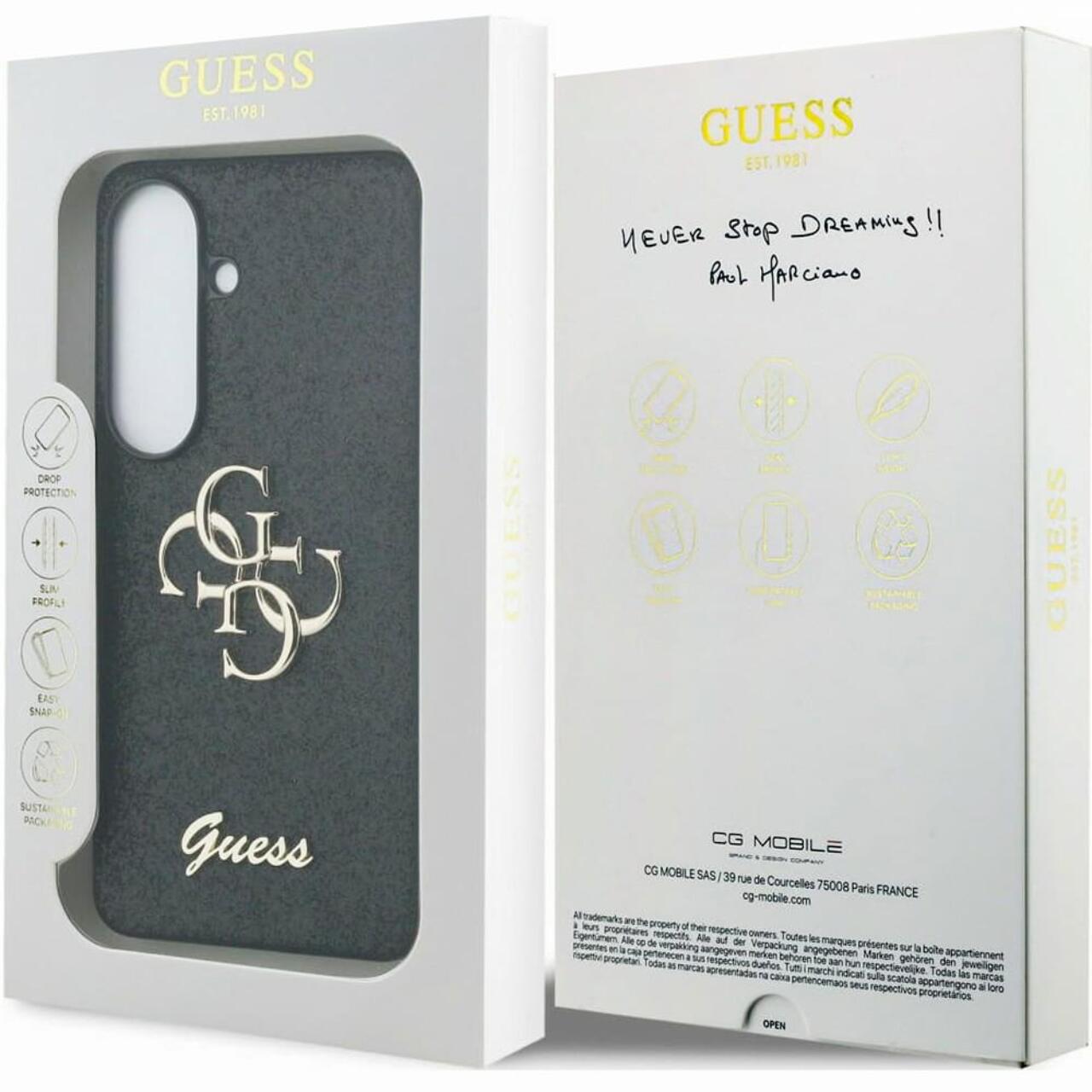 Guess Husa Fixed Glitter 4G Metal Logo Samsung Galaxy S26 Negru