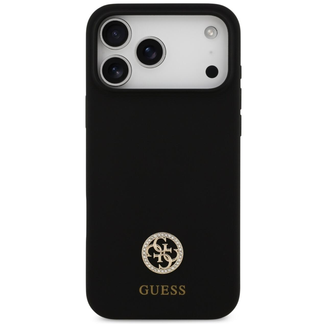 Guess Husa Silicone Logo Strass 4G MagSafe iPhone 17 Pro Max Negru
