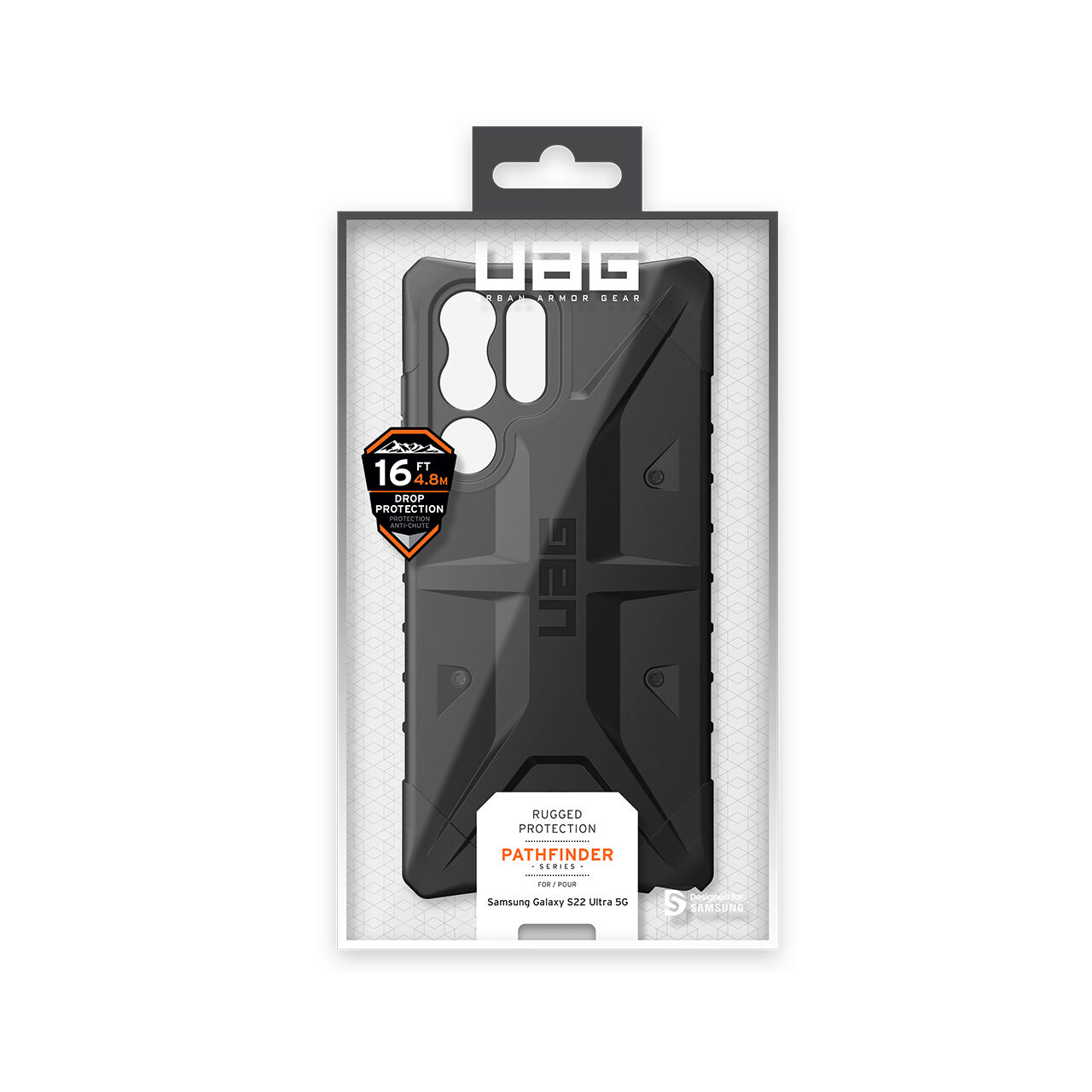 Husa Pathfinder Series pentru Samsung Galaxy S22 Ultra de la UAG este compusa din materiale de calitate ce preiau cu succes socurile si protejeaza impotriva zgarieturilor. Marginile sunt flexibile in zona butoanelor, sus si jos, iar colturile sunt evidentiate si intarite. Indeplineste standardele de protectie Military Drop Tested MIL STD 810G 516.6 impotriva socurilor si picaturilor de apa.