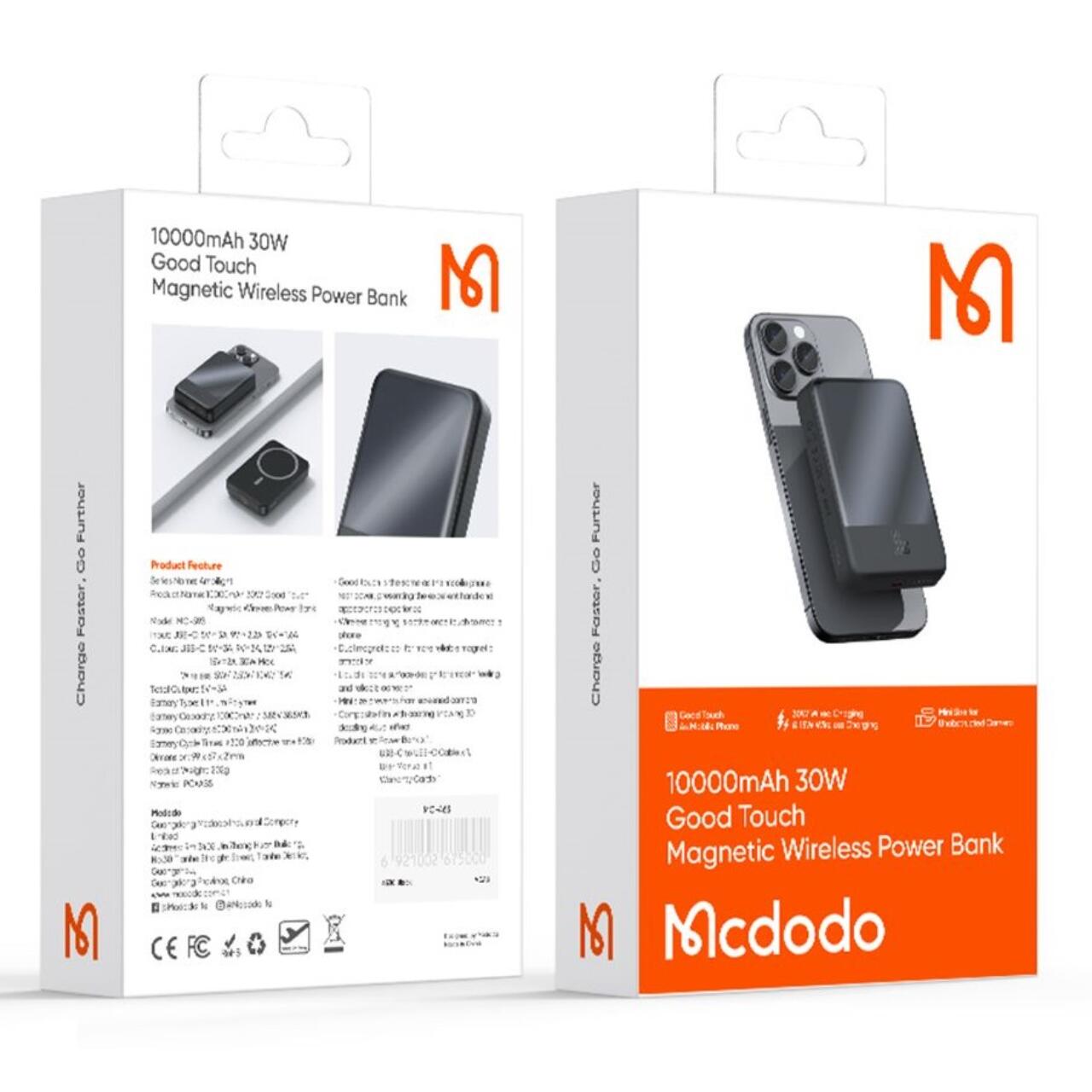 Acumulatorul Mcdodo Extern Magnetic 10000mAh, reprezinta o combinatie echilibrata intre design modern, dimensiuni compacte si performanta ridicata, fiind conceput pentru a asigura alimentarea dispozitivelor mobile in orice situatie. Cu o capacitate de 10000 mAh, acest acumulator extern este potrivit atat pentru utilizarea zilnica acasa, cat si pentru deplasari sau calatorii.