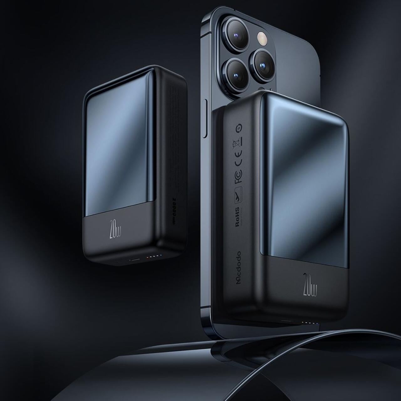 Mcdodo Acumulator Extern Magnetic 20000mAh Ambilight Series, NTC Temperature Control, 20W, LED Indicator, cablu Type-C la Type-C, 0.2m, Negru