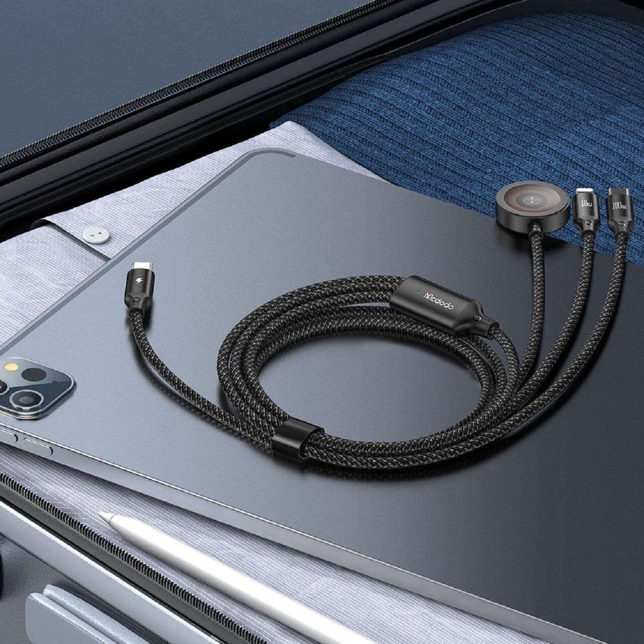Mcdodo Cablu 3in1 Type-C la Lightning/Type-C cu Incarcator Wireless compatibil cu Apple Watch, 100W Fast Charging, O Series, 1.2m Negru