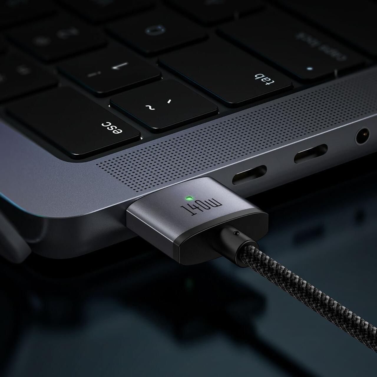 Mcdodo Cablu pentru MacBook Pro 16 inch, se remarca prin capacitatea sa impresionanta de incarcare de pana la 140W, sustinuta de un curent de maxim 5A, ceea ce il face perfect pentru alimentarea laptopurilor Apple moderne, inclusiv MacBook Pro si MacBook Air. Aceasta putere ridicata permite reducerea semnificativa a timpului de incarcare — de exemplu, un MacBook Pro 16" (2021/2023) poate ajunge la 60% in aproximativ 30 de minute, ceea ce reprezinta o eficienta excelenta pentru utilizatorii care sunt mereu in miscare.