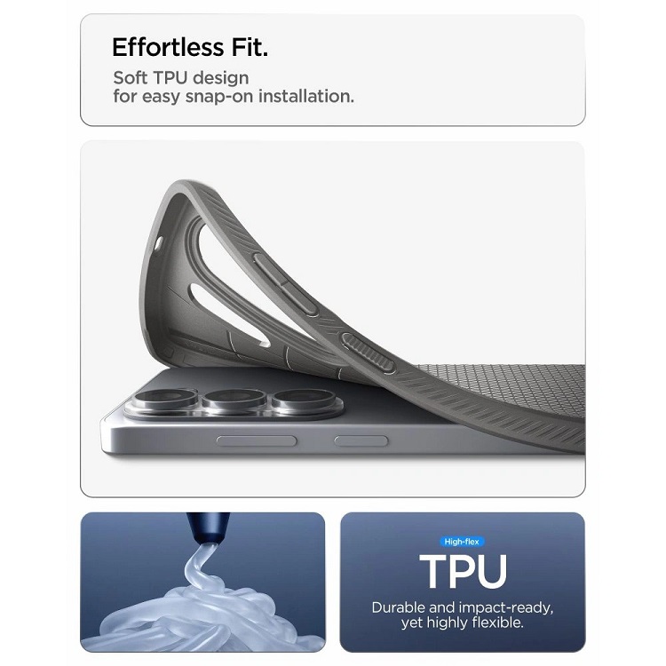 Designul minimalist si texturat asigura o prindere sigura si un aspect curat, facand din Spigen Liquid Air alegerea ideala pentru cei care doresc protectie discreta, dar eficienta. Sistemul Air Cushion integrat in colturi protejeaza telefonul de impacturi accidentale, iar decupajele precise permit acces complet la toate porturile, butoanele si functiile dispozitivului.