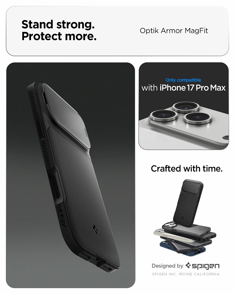Husa Optik Armor MagSafe iPhone 17 Pro Max de la Spigen, este proiectata pentru utilizatorii care isi doresc un nivel superior de protectie pentru smartphone-ul lor. Constructia hibrida, ce combina TPU flexibil cu policarbonat (PC) rezistent, ofera durabilitate excelenta si protectie eficienta impotriva socurilor si cazaturilor.