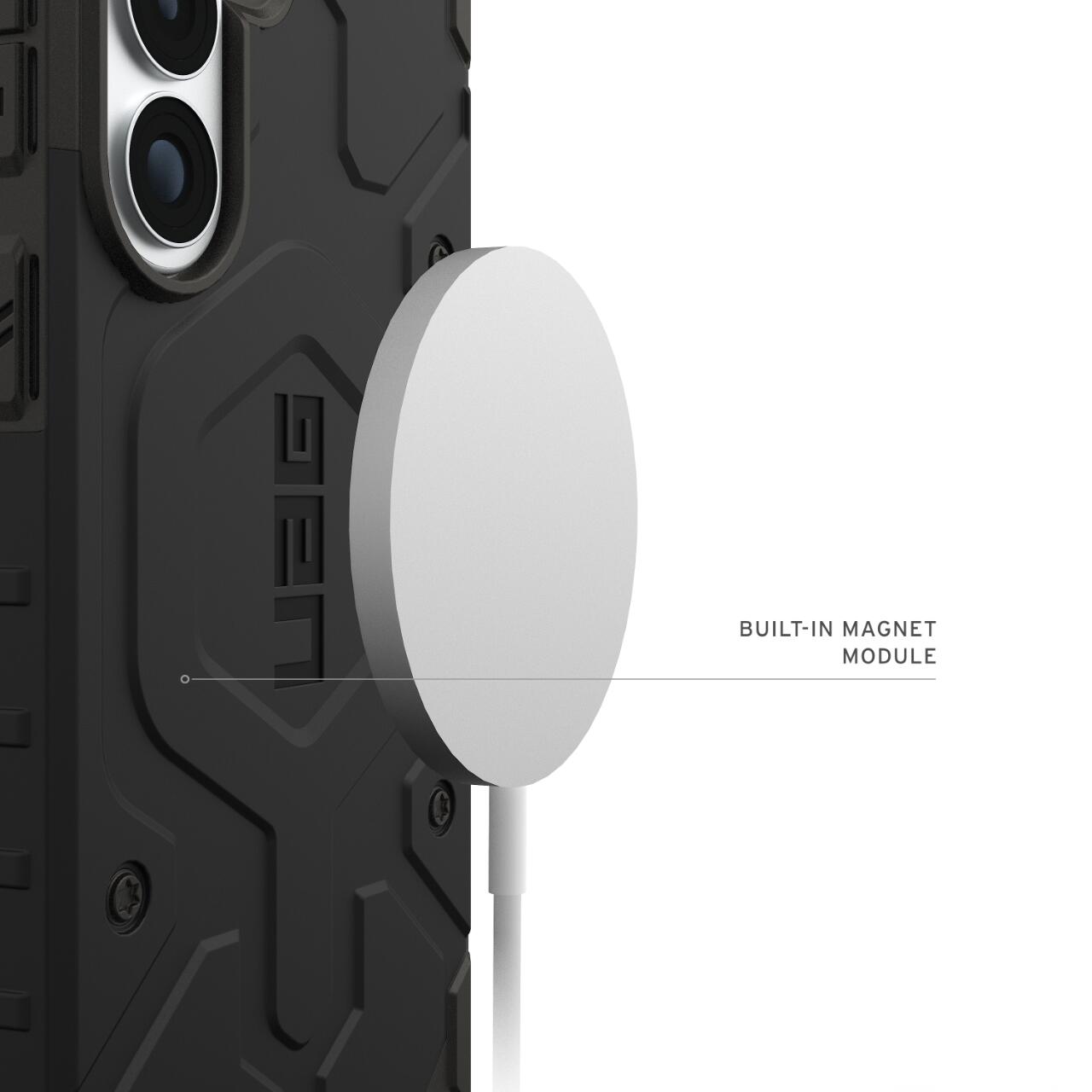 Modulul nostru magnetic integrat blocheaza dispozitivul in siguranta atunci cand utilizati incarcatoare fara fir sau alte accesorii magnetice.