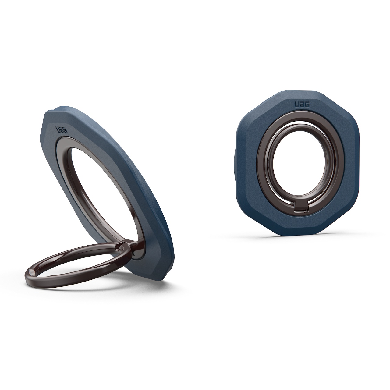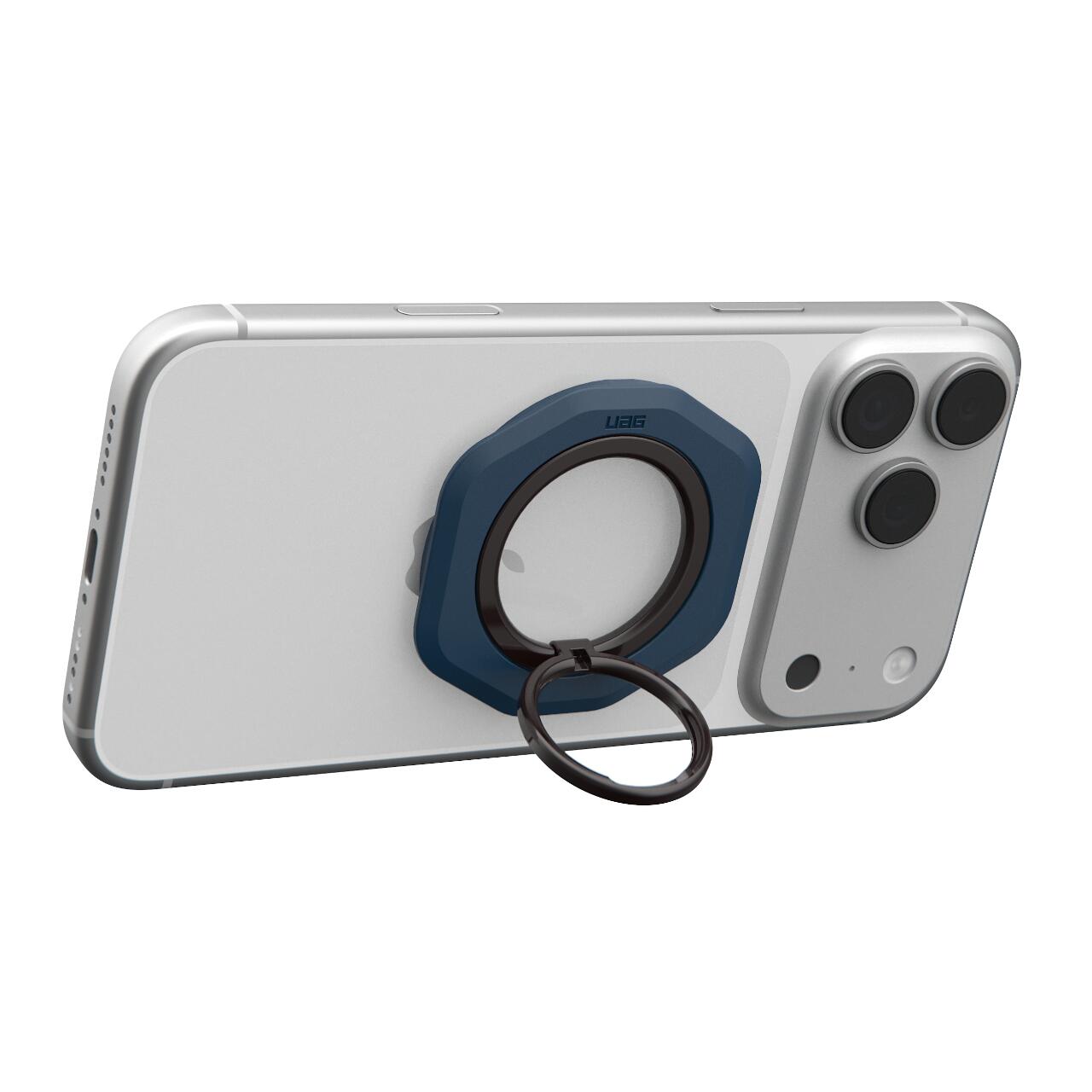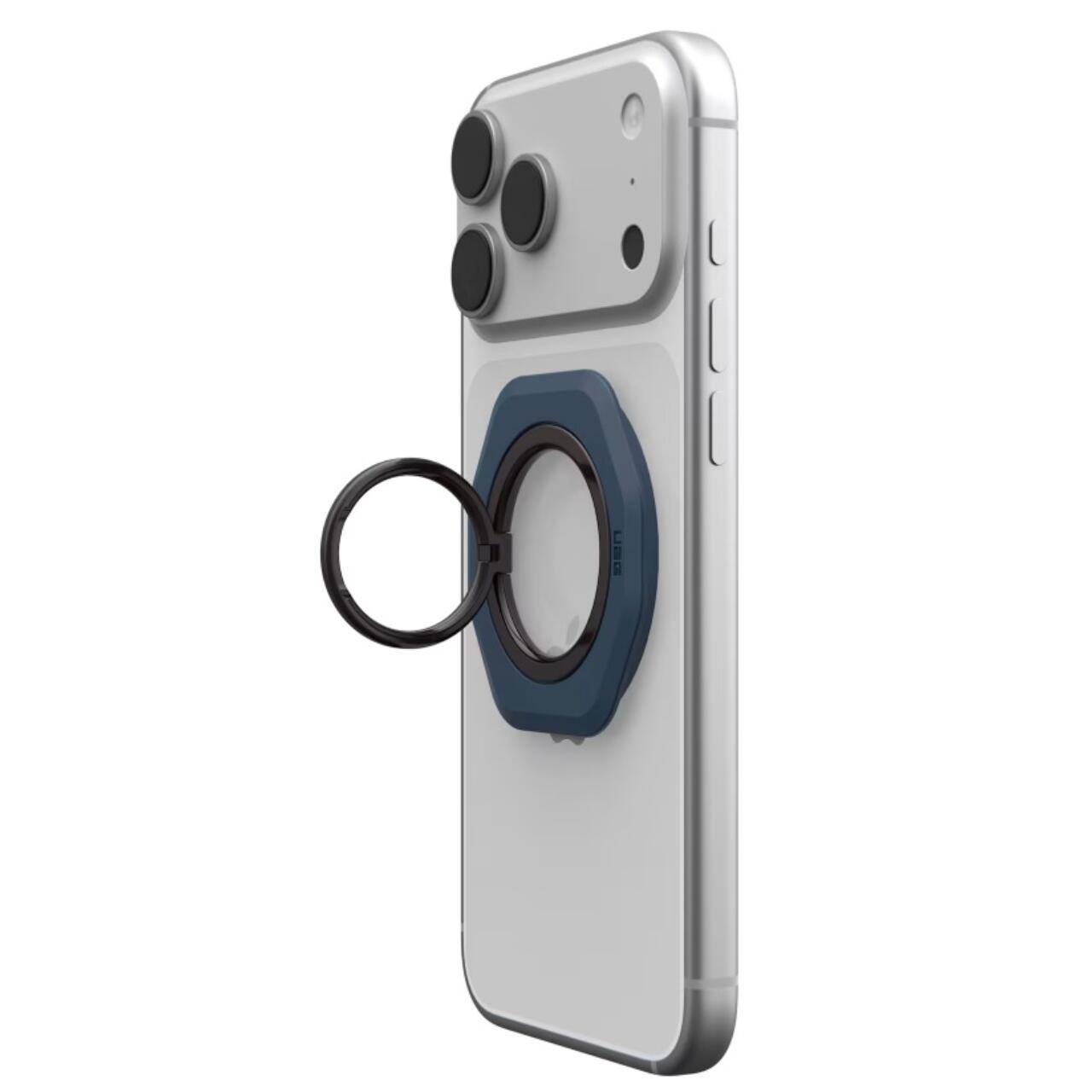 Inelul magnetic stand pentru telefon de la UAG, este un accesoriu ergonomic conceput pentru a oferi o prindere sigura si stabilitate sporita in utilizarea zilnica a telefonului. Datorita sistemului magnetic integrat, acesta se fixeaza ferm pe dispozitivele compatibile MagSafe si poate fi utilizat atat ca inel de siguranta, cat si ca suport de birou pentru utilizare hands-free.