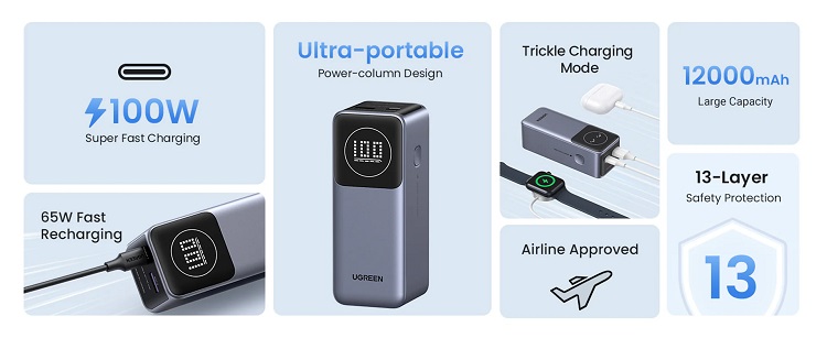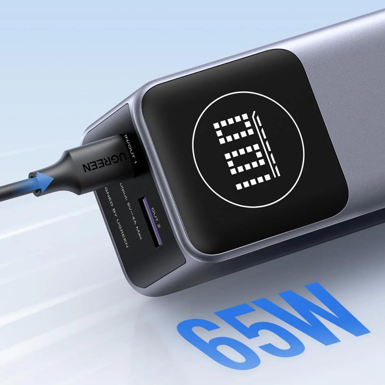 Ugreen Acumulator extern 12000mAh, 100W, Fast Charging,Type-C, USB, Digital Display Gri