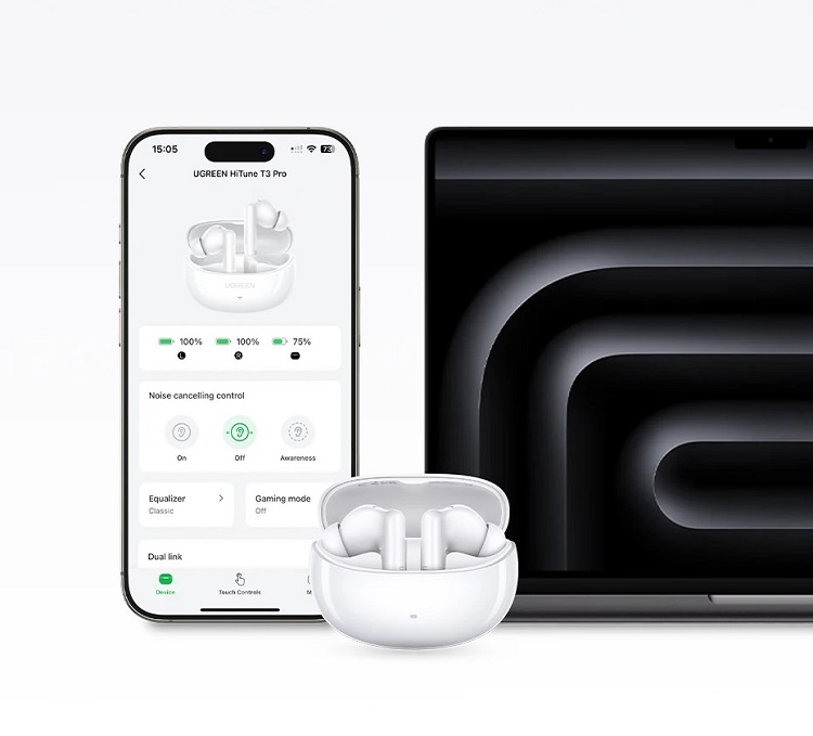 Scena sonora ofera o impresie de adancime surprinzatoare, iar driverele de 10 mm redau un sunet echilibrat pe intregul spectru de frecventa. Prin aplicatia Ugreen (Android / iOS), utilizatorul poate ajusta modurile de sunet pentru a obtine o semnatura sonora personalizata.