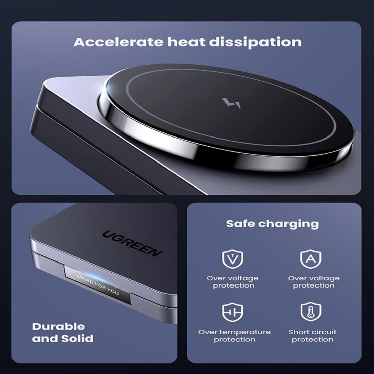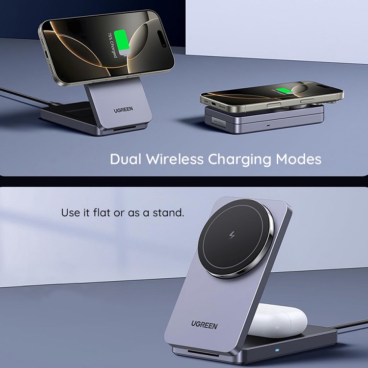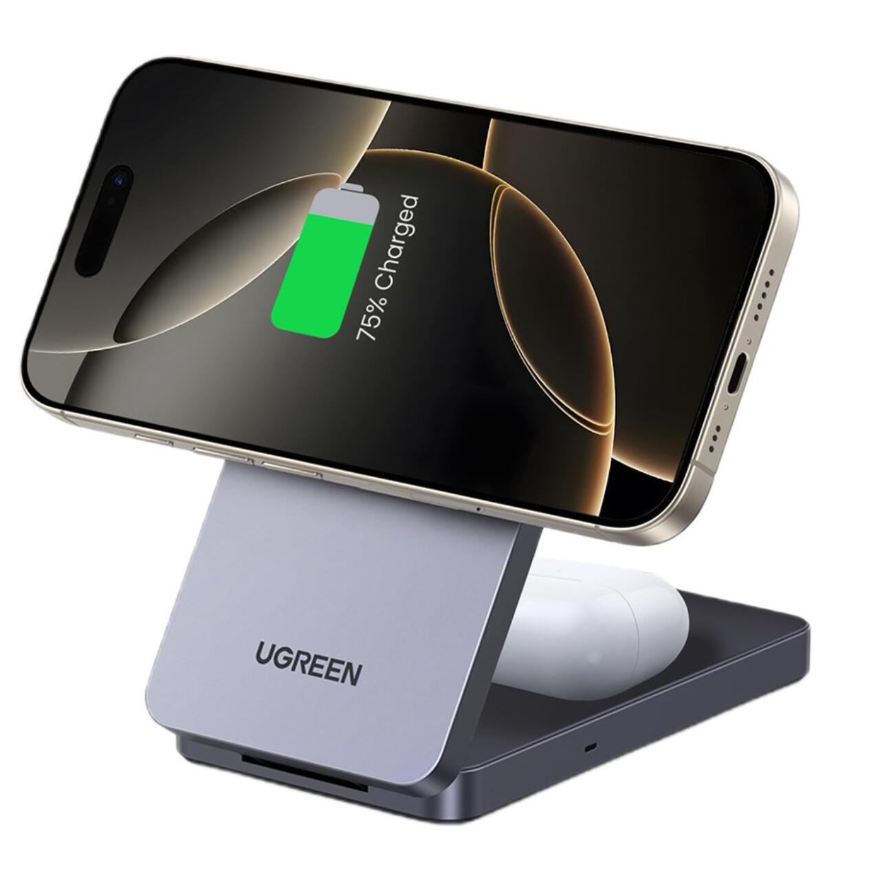 Ugreen Incarcator Wireless 2 in1 MagSafe, 15W, pentru iPhone, AirPods, design pliabil compact, Negru