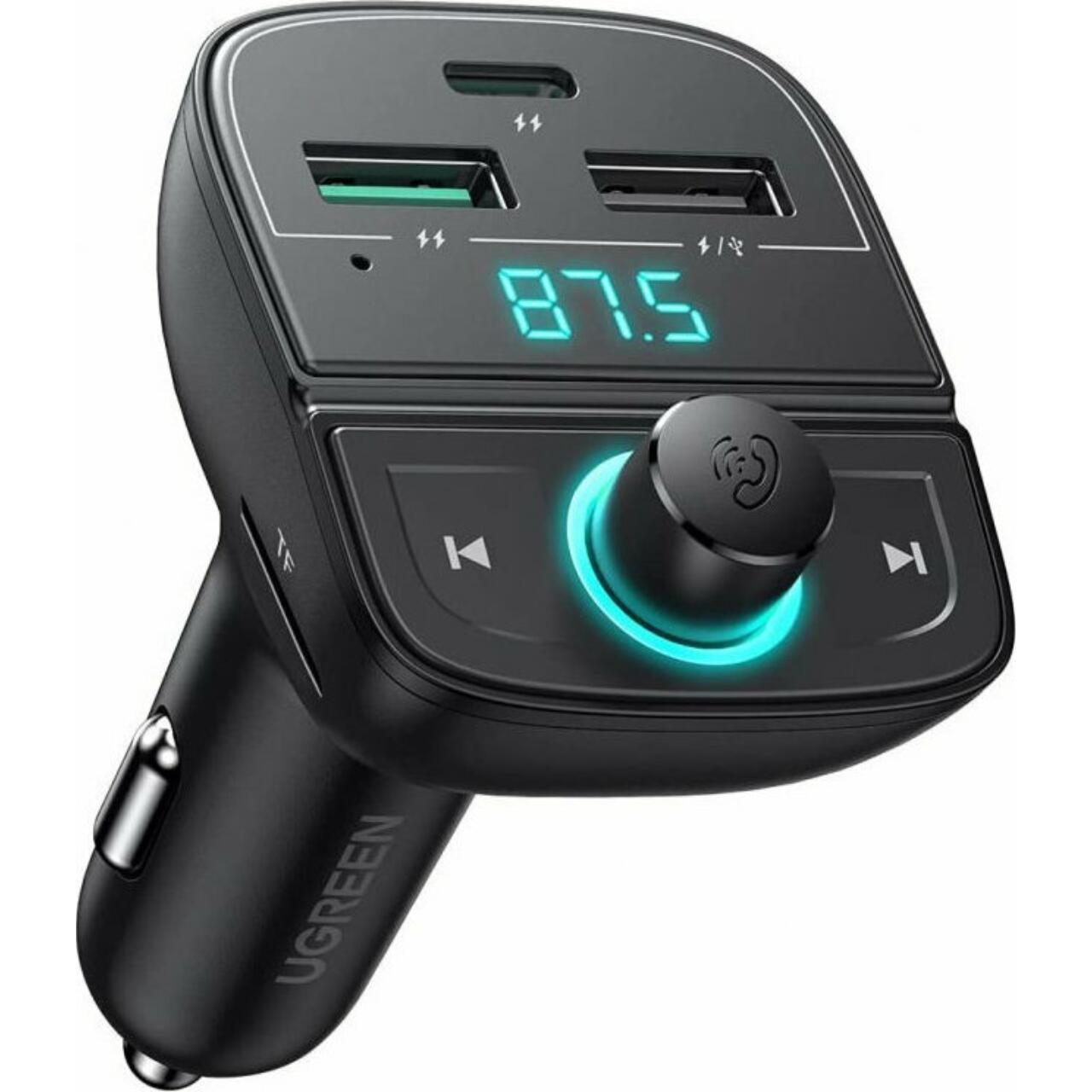 Ugreen Modulator FM cu incarcator auto 31.5W, Bluetooth, 2x USB-A, 1xType-C, TF Card Slot, LED Display, Negru