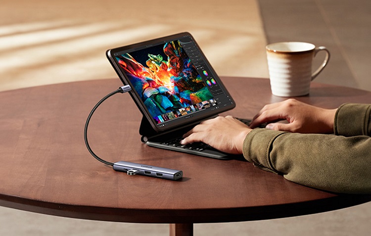 Multihub-ul Ultra-Thin Type-C la USB3.0 de la Ugreen, este un gadget compact si extrem de functional, conceput pentru utilizatorii care doresc eficienta maxima la conectarea mai multor dispozitive la un computer sau laptop printr-un singur port USB-C.